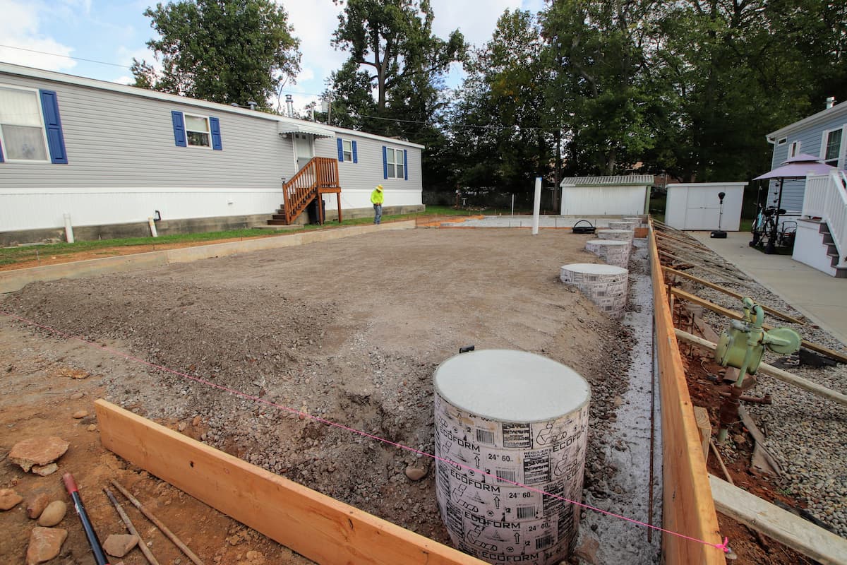 - Concrete Foundation system with 6" slab and 24" diameter piers at 8' on center