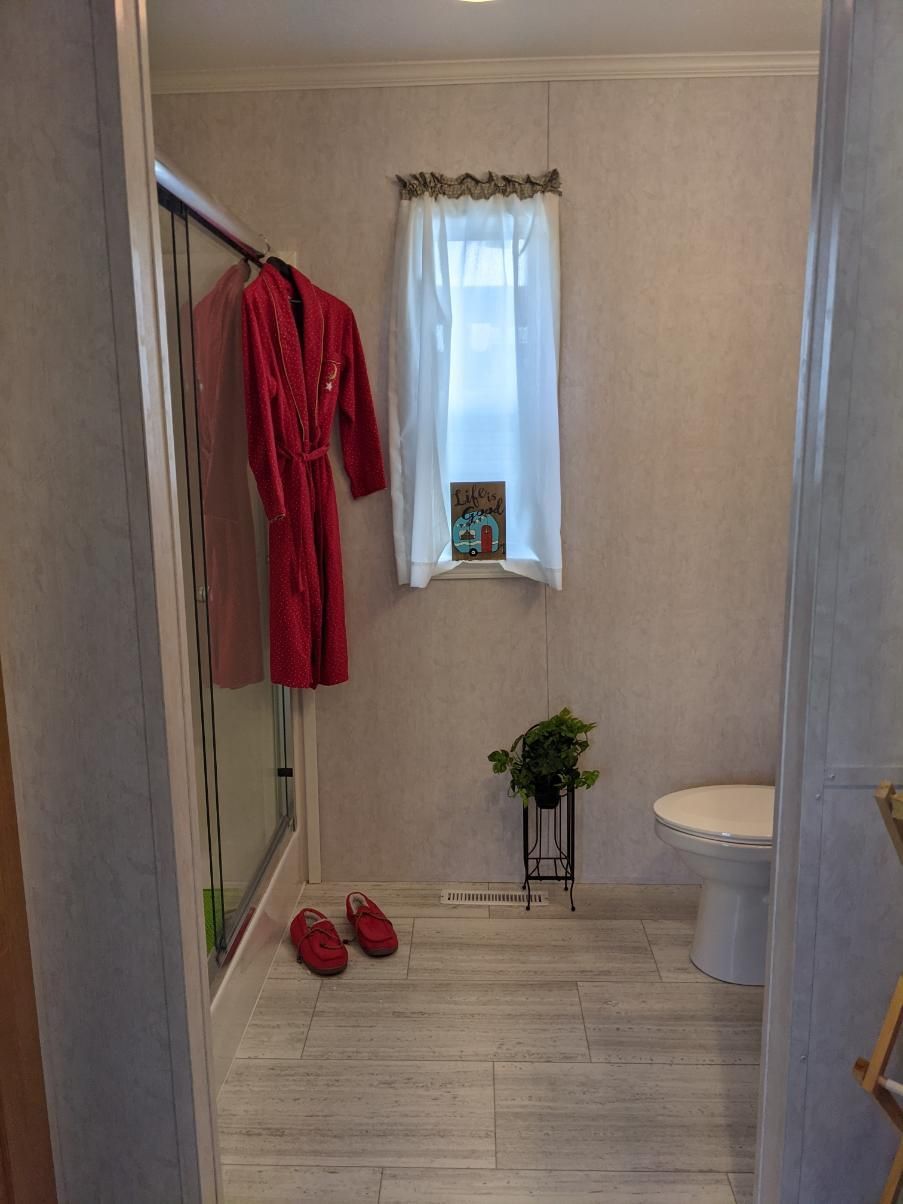 - Vinyl on Gypsum board (water resistant wall covering) is in the closets and bathrooms
