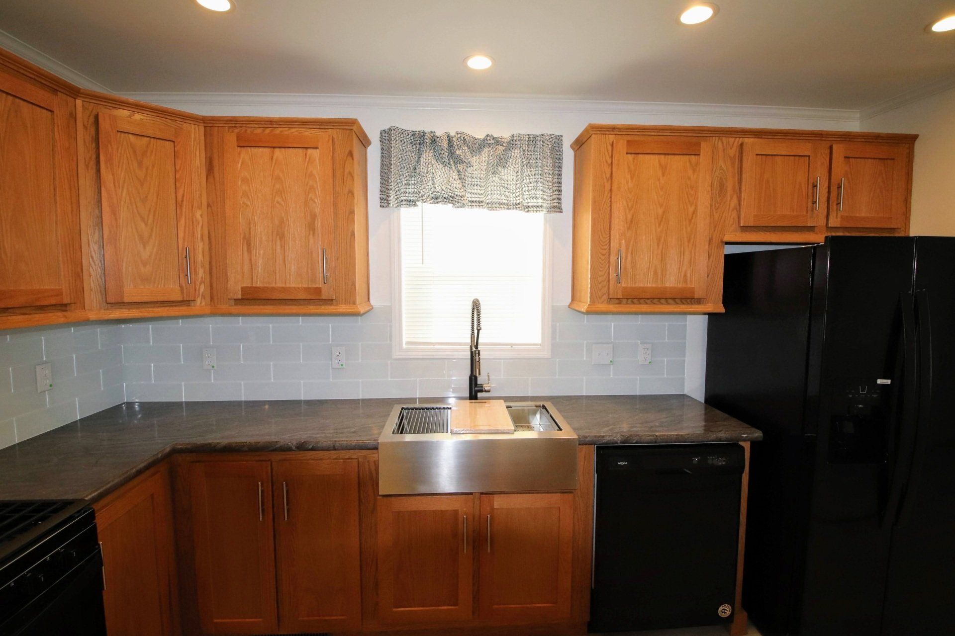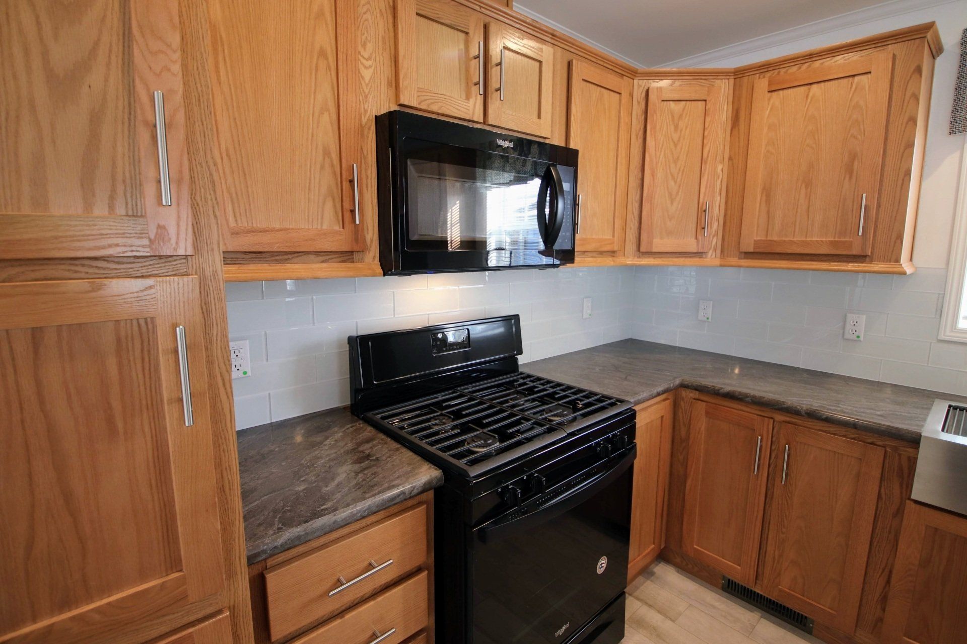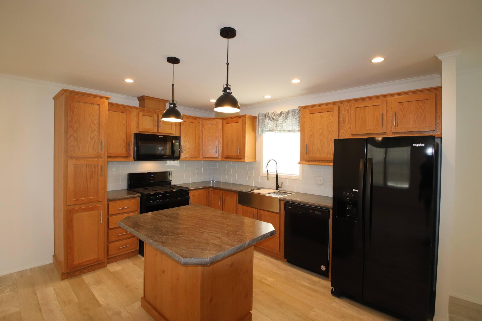 - Black Whirlpool appliance package, Gas Range, Dishwasher, 22′ cu ft Refrigerator, and microwave over range